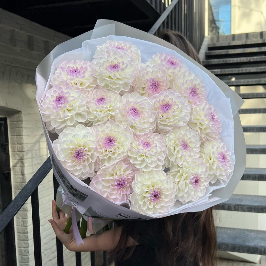 Букет из 19 бело-лиловых георгин в Кропоткине